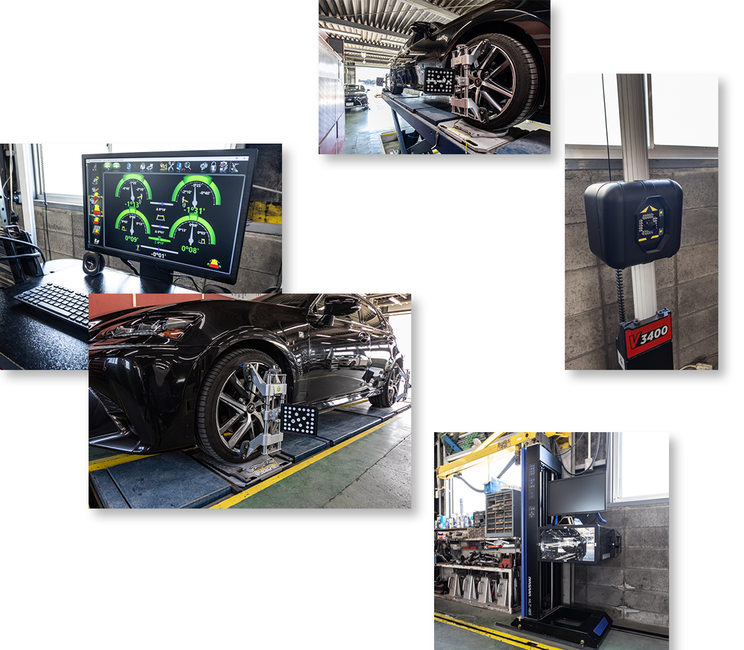 時代が経過とともに、「走る」「曲がる」「止まる」の基本性能を大切に、宮崎ではまだ少ない最新の四輪アライメント測定設備を導入して高い品質の診断をご提供しております。